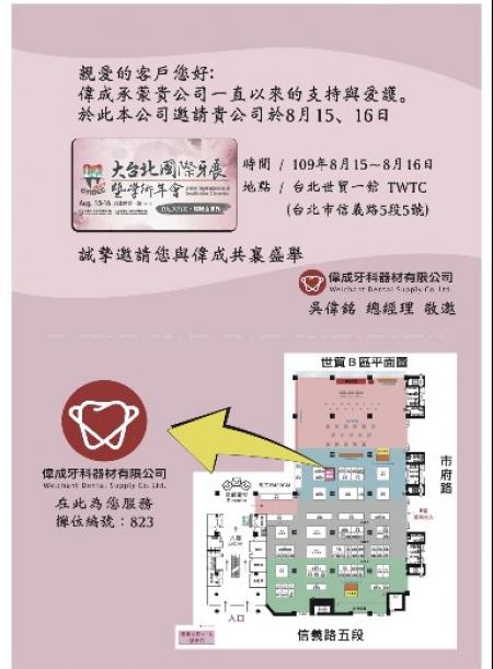 接下來我們即將在8/15-16 大台北國際牙展 823攤位展出